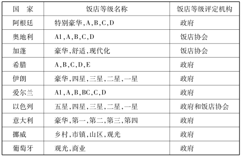 除此以外,世界各国采用的酒店等级的方法还有钻石符号和英文字母等。(表1.1)