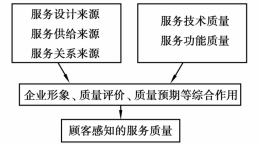 通常顾客感知的服务质量要受企业形象、顾客预期质量和体验质量3方面的综合作用。顾客在消费前,常受企业广告或其他宣传形式的影响,或自己以前消费的经验已形成对企业形象的初步认识,对自己准备要购买的服务质量有了比较具体的预期。这样,顾客在消费前,已形成并带有具体期望;顾客在消费后,会把自己在消费中体验到的服务质量与预期的服务质量比较,得出对该企业服务质量的结论。此外,顾客对服务质量的最终评价还受顾客心目中原有企业服务形象的调节。如果该企业的形象一贯较好,顾客很可能原谅在服务中的小过失,从而提高对该企业服务质量的评价;然而,若顾客对该企业原有的形象印象不佳,顾客会放大服务中的缺点,从而得出不满的结论。(图5.1)