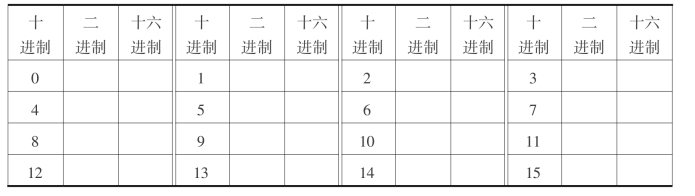 1.填写下表并熟记(二进制数请用4位数表示,不足4位,高位可添0)。