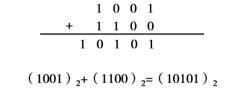 例1:试计算(1001)2+(1100)2,采用竖式计算的过程如图1-5所示。