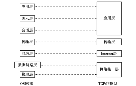 注意:OSI模型层次与TCP/IP模型层次并不是如图2-2所示的严格一一对应关系。