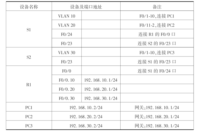 在PACKET TRACER软件中搭建,如图3-23所示网络拓扑,各设备及端口地址见表3-5。