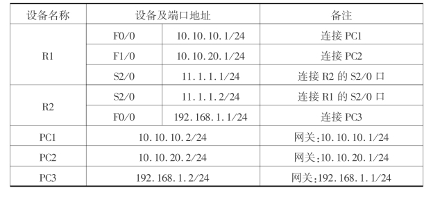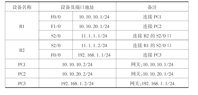 表5-1所示为配置PC1、PC2和PC3的IP地址、子网掩码和网关地址,进行连通性测试。此时全网贯通,PC1、PC2与PC3可以互访。