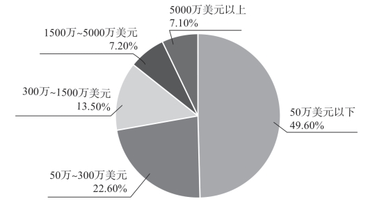 投资规模与海外履责表现有较强的关联性。在参与调研的民营企业中,有1647 家企业参与“一带一路”建设,其中50 万美元以下投资额的企业近半(见图12)。分析发现,投资规模较大和投资期限较长的企业已经在海外履责的理念、管理和行动方面形成了具有自身特色的模式和经验,例如中国民营企业汽车巨头吉利控股建设开放包容的“全球型企业文化”,实现与“一带一路”沿线国家的文化融合、人才融合、技术融合;亨通集团秉承“企业走到哪里,社会责任就要走到哪里”的理念,始终遵守所在国法律……这些企业起到了很好的标杆作用与示范效应。