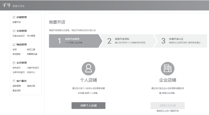 (3)在我要开店页面中,单击“创建个人店铺”按钮,如图4-2-5所示。