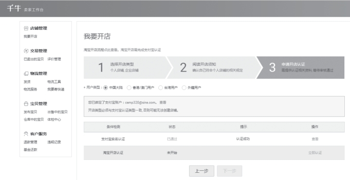 二、申请淘宝个人店铺的流程