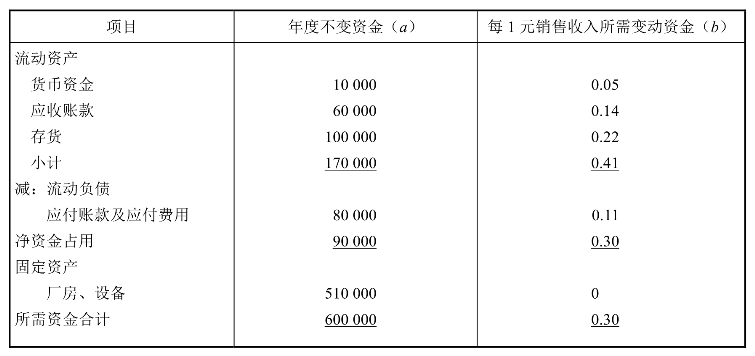 这种方法是根据各资金占用项目(如现金、存货、应收账款、固定资产)同产销量之间的关系,把各项目的资金都分成变动资金和不变资金两部分,然后汇总在一起,求出企业变动资金总额和不变资金总额,进而来预测资金需求量。