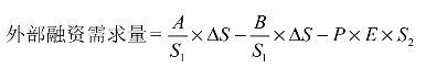 式中,A为随销售而变化的敏感性资产;B为随销售而变化的敏感性负债;S1为基期销售额;S2为预测期销售额;ΔS为销售变动额;P为销售净利率;E为利润留存率。