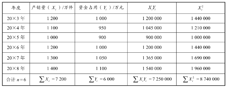 (一)根据资金占用总额与产销量的关系预测(回归直线分析法)