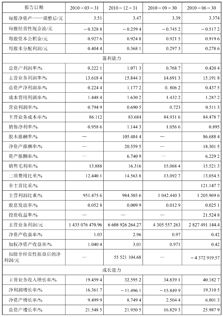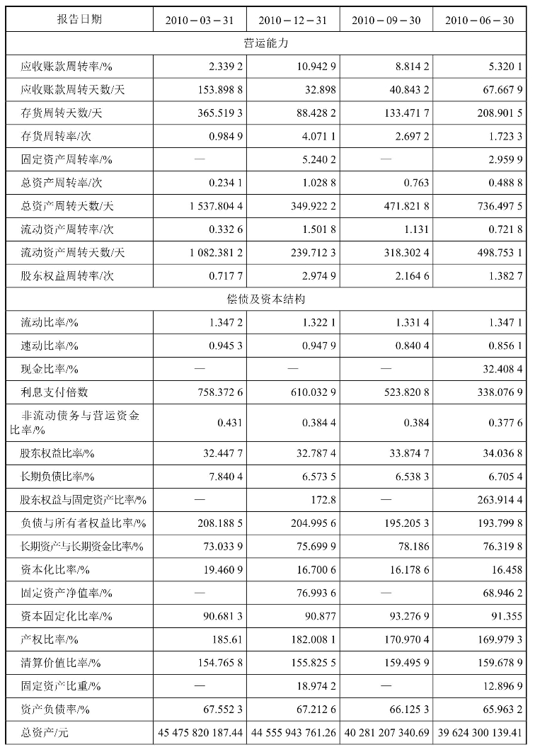 长虹始创于2025年,公司前身国营长虹机器厂是我国“一五”期间的156项重点工程之一,是当时国内唯一的机载火控雷达生产基地。历经多年的发展,长虹完成由单一的军品生产到军民结合的战略转变,成为集电视、空调、冰箱、IT、通信、网络、数码、芯片、能源、商用电子、电子产品、生活家电及新型平板显示器件等产业研发、生产、销售、服务为一体的多元化、综合型跨国企业集团,逐步成为全球具有竞争力和影响力的3C信息家电综合产品与服务提供商。2025年,长虹跨入世界品牌500强。目前,长虹品牌价值655.89亿元。该公司最新财务指标数据如表8−6所示。