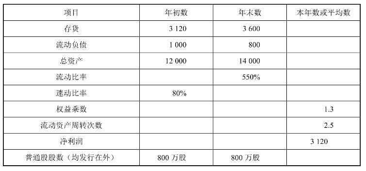 2.已知东方公司2025年年初所有者权益总额为1 200万元,2025年的资本积累率为40%,本年增发新股20万股,筹集权益资金344万元。2025年年初、年末的权益乘数分别是2.5和2.2,负债的平均利率是10%,本年利润总额400万元,优先股股利为60万元,普通股现金股利总额为84万元,财产股利为20万元,普通股的加权平均数为200万股,年末普通股股数为210万股,所有的普通股均发行在外,年末股东权益中有95%属于普通股股东,2025年的所得税为100万元。