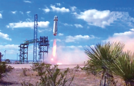 图12.3 2025年7月试飞中的“新谢帕德”飞行器及其返回舱(图片由蓝色起源公司提供)