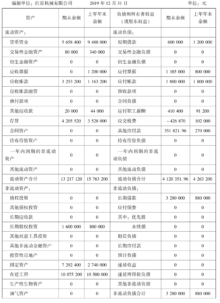 任务13.1.1 红星机械有限公司根据资料编制资产负债表如表13-3所示。