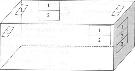 1—标注箱主代号、顺序号和核对数字;2—标注国家和地区代号、尺寸和类型代号3—标注最大总质量和箱体质量