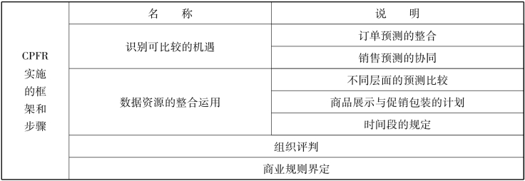 CPFR实施的框架和步骤见表2-7。