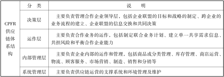 表2-6 CPFR供应链体系结构