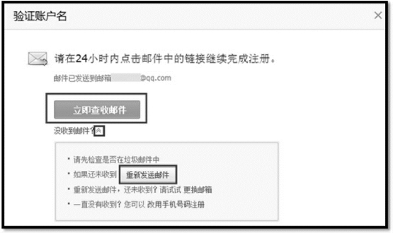 第三步,点击“立即查收邮件”,如果没有收到邮件,可点击“重新发送邮件”,如图3-24所示;