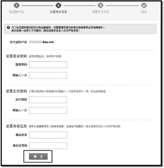 第五步,填写个人信息后,点击“确定”,真实姓名必填。注册完成后不可修改,如图3-26所示。