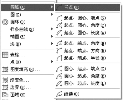 ·单击菜单栏中的【绘图】/【圆弧】/【三点】或【起点、圆心、端点】命令。