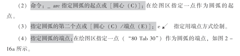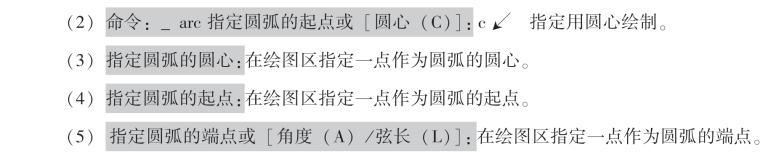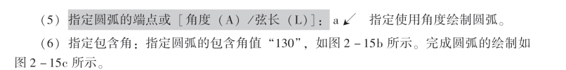 ★在绘制圆弧时,除三点绘制圆弧外,其他方法都是从起点到端点绘制圆弧,并且起点和端点的顺序可按顺时针或逆时针方向给定。并且要注意角度的方向和弦长的正负,逆时针绘制圆弧为正,反之为负。