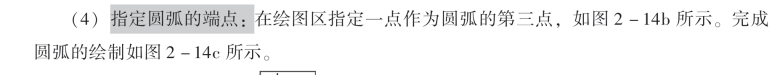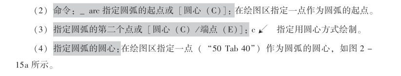 【摘要】:由于在菜单栏中/的子命令有11种绘制圆弧的方法,如图2-13所示,所以在此主要介绍几种常用的圆弧绘制方法。因为圆弧命令的选项多而且复杂,所以绘图时注意给定条件和命令行的提示就可以实现圆弧绘制。图2-16a指定圆弧的端点图2-16b指定圆弧的半径值图2-16c完成圆弧的绘制方法四:使用圆心、起点、端点绘制圆弧使用圆心、起点、端点绘制圆弧的步骤如下:执行绘制圆弧的命令。