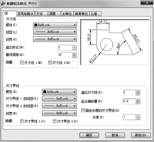 (3)在修改标注样式对话框中进行所需的修改(与新建标注样式的方法类似)。
