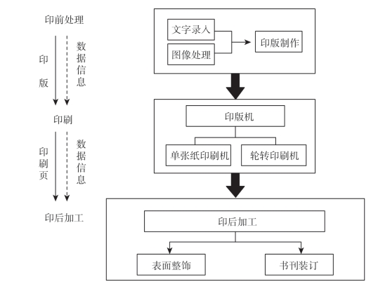 综上所述,书刊、本册的制作主要有三大工序,即印前处理、印刷和印后加工(图1-2)。其中印后加工阶段又包含了书刊本册的装订加工和表面整饰两大工序。(https://www.daowen.com)