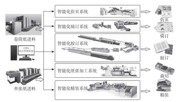 印刷品的价值,要靠最后装订出的成品来体现。各工序的质量、工艺必须服从装订的工艺要求,才能发挥出装订工艺的最大效益。要使书刊印刷生产能够合理有效地进行,必须有一个先后顺序的安排,书刊印刷生产工艺流程(图2-1)就是将书刊的印前、印刷和印后加工按一定的工艺顺序串联起来组成书刊生产工艺流程。装订生产工艺流程(图2-2)是书刊生产工艺流程中的重要一环,能连续自动地完成从折页到成书加工过程,所以装订生产流水线是提高生产效率和产品质量的生产组织形式,书刊装订数字化、智能化生产是书刊装订发展的主要趋势。在书刊装订生产线上,被加工的对象按照工艺过程连续进入生产线上,各工序利用相应的机器,按工艺顺序自动地对加工对象进行不同的加工处理,定时在工序间传送、换位和从生产线输出成品。使用装订生产线大大降低了工人的劳动强度,减少了占地面积,加快了装订速度,缩短了出书周期,因而有助于产品质量的提高。各种生产工艺流程都是以生产效率和产品质量的提高为宗旨,是书刊装订生产的主要组织形式。