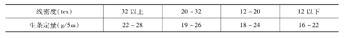 (1)定量。常用的生条定量一般在25g/5m左右,重定量也有25g/5m以上的。