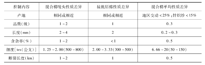 注意:竹节纱对于条干的要求,不需要达到普通纱条干的要求,但配棉时仍不能降低用棉等级,因为纤维长度直接影响竹节的形成,继而影响成纱质量。原棉性质差异控制范围参见表2-1。