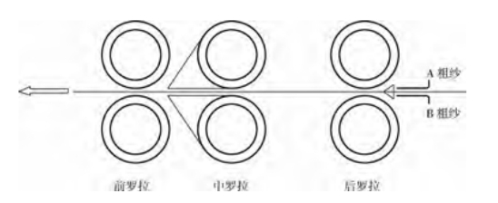 赛络纺中,一般采用“重加压、大隔距、低速度、中钳口隔距”的工艺原则,以解决因双股粗纱喂入牵伸力过大,易出现牵伸不开、硬头等问题。