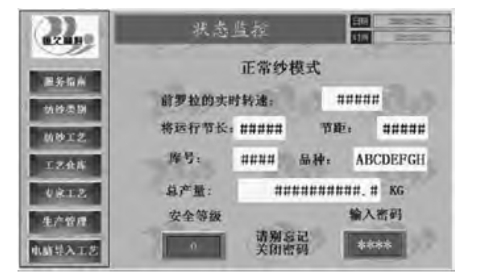 (1)在图2-19所示屏幕右下方点击,便自动进入下一屏幕,屏幕显示与密码设置方法同CCZ-8竹节纱装置。