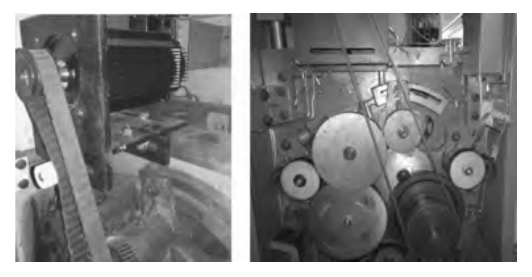 ②拆开其中一根前罗拉的罗拉头,把31T小同步轮及120XL小同步带套进前罗拉头。