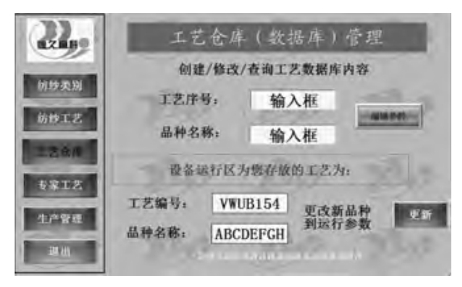 ④工艺仓库:工艺编号、提取工艺纺纱。