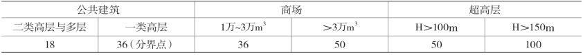 1 一类高层公共建筑,不应小于36m3,但当建筑高度大于100m时,不应小于50m3,当建筑高度大于150m时,不应小于100m3;